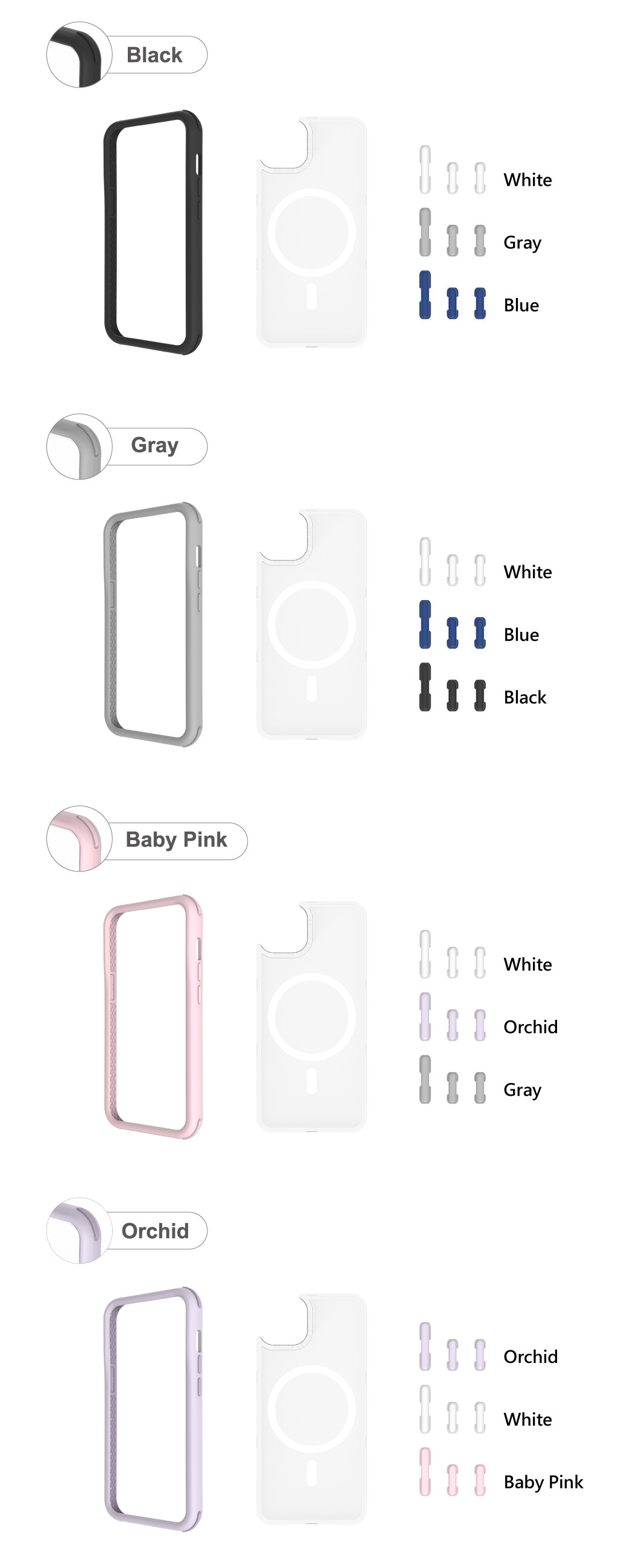Anti-Shock Bumper x1 + MagSafe Matte Back Cover x1 + 4 color buttons