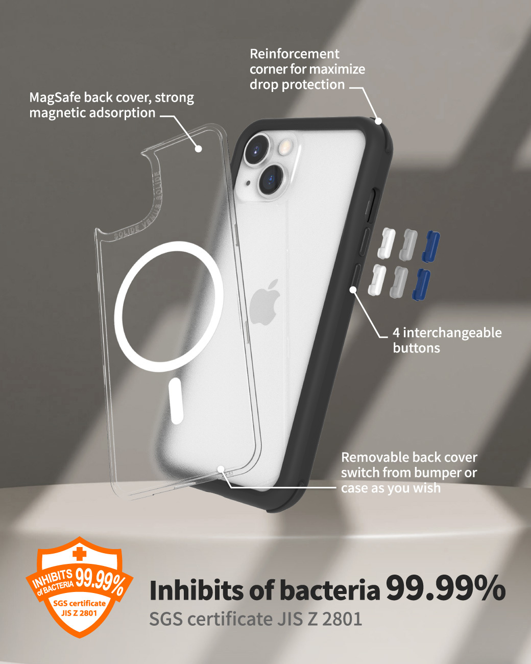 Anti-Shock Bumper x1 + MagSafe Matte Back Cover x1 + 4 color buttons
