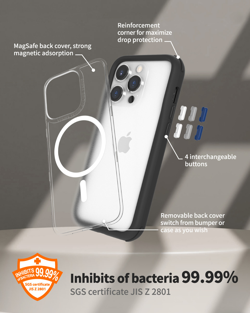 Anti-Shock Bumper x1 + MagSafe Matte Back Cover x1 + 4 color buttons