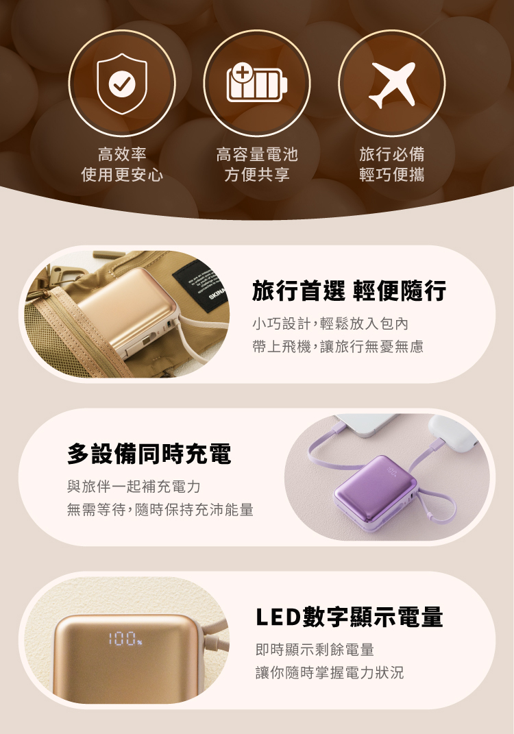 1. 充電時行動電源會產生熱能。需在通風良好的區域充電。請勿在枕頭、毯子或易燃表面上充電。