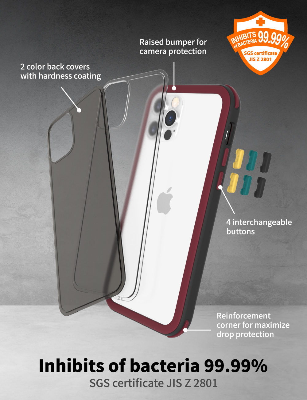 Anti-Shock Bumper x1 + Two Back Covers (Matte x1 & Color x1) + 4 color buttons