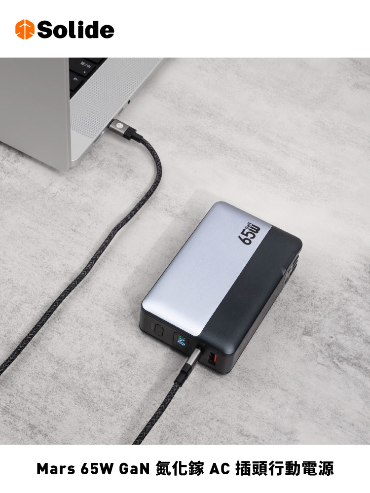 Charger and power bank with dual functionality. The power bank employs GaN (Gallium Nitride) fast charging technology, delivering 65W ultra-fast charging with a high-capacity lithium battery.