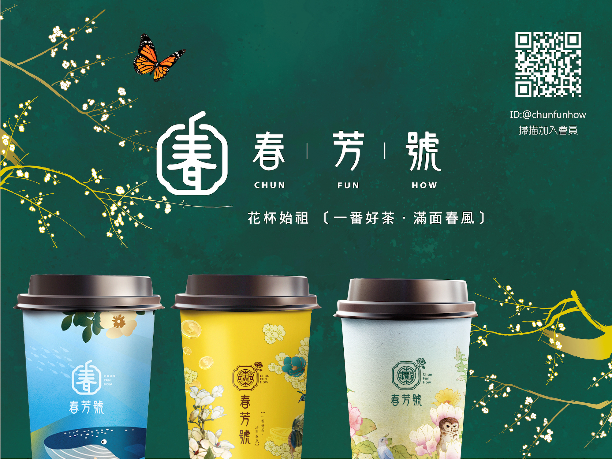 「春芳號成立於2014,在台中發跡,已拓展海外(香港、新加坡、溫哥華、印尼、英國)多家分店,為全球華人的精緻手搖茶飲品牌。」