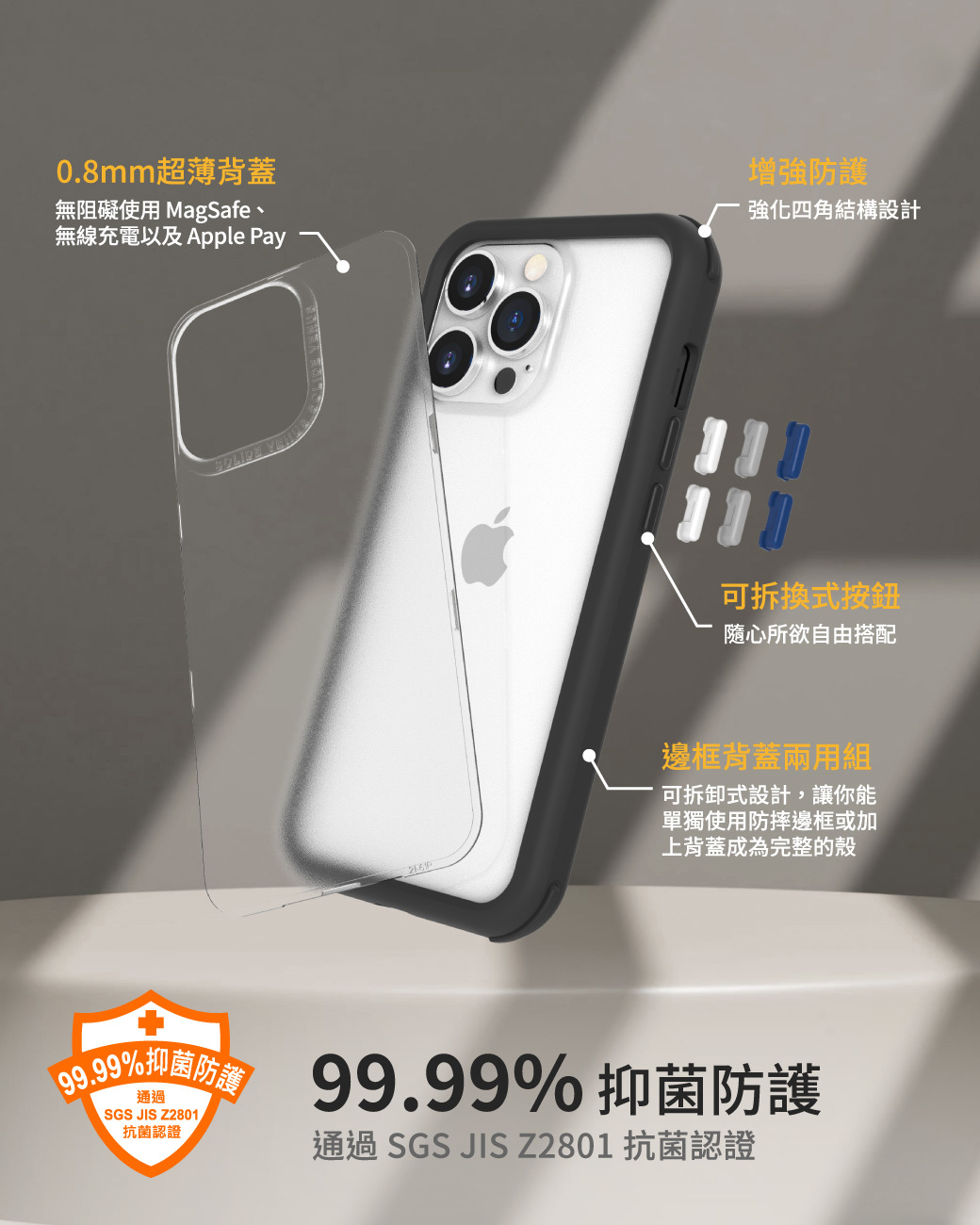 *邊框 + 可替換式背蓋 + 可替換式按鈕