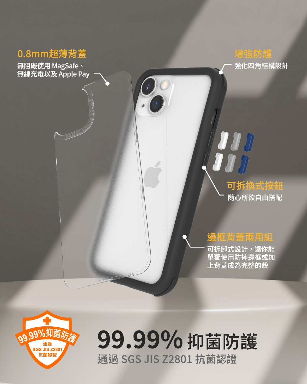 1個防摔邊框 + 1個可替換式背蓋 + 3組可替換式按鈕
