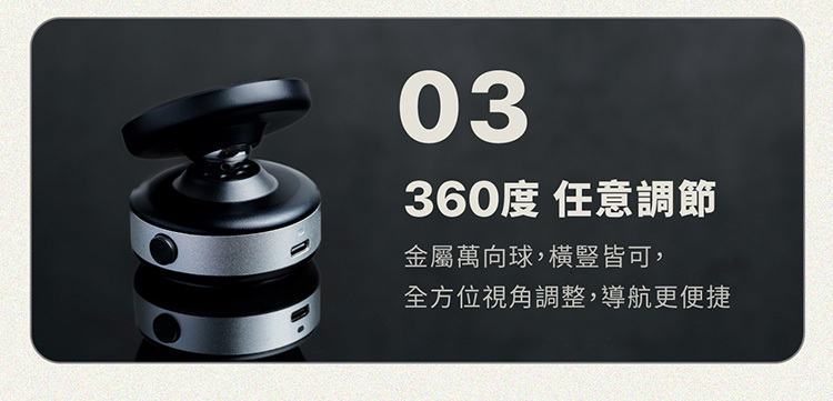 360度任意調節:金屬萬向球,全方位視角調整,導航更便捷。