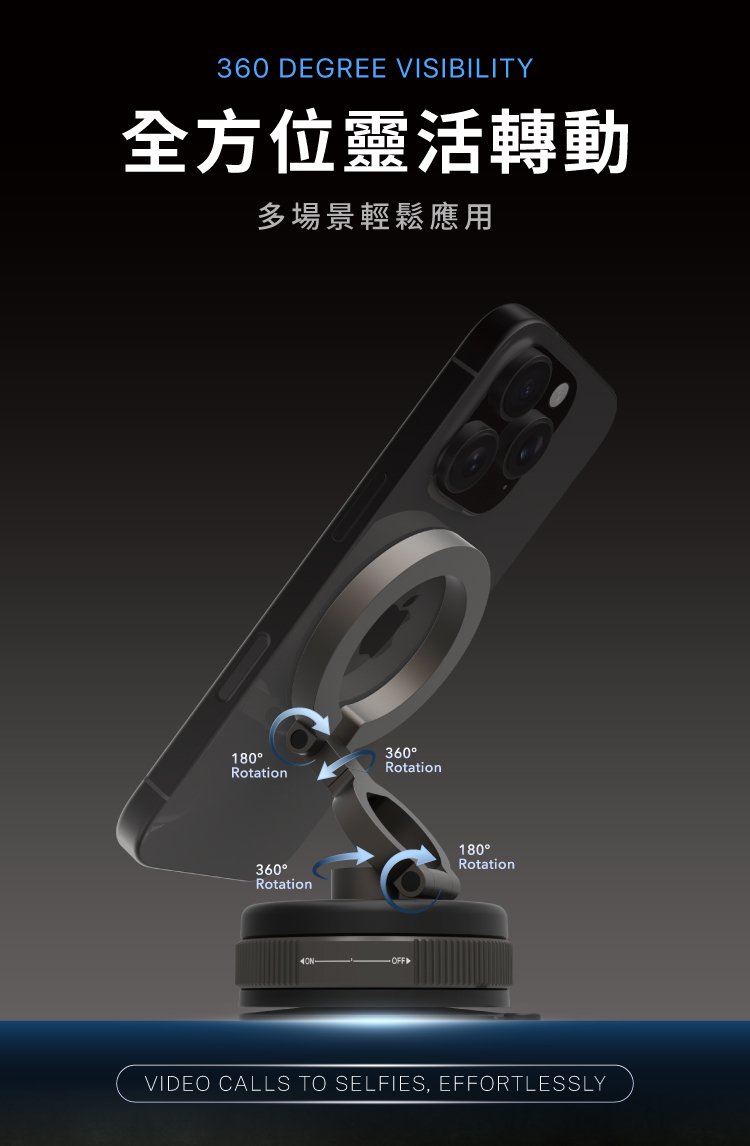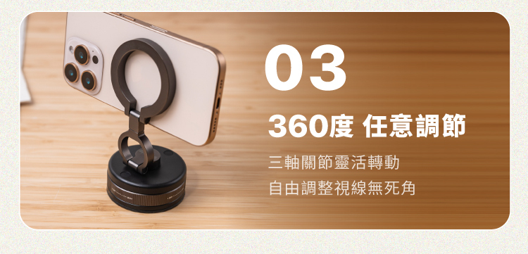 三軸結構+360度旋轉底座,視角隨心調整。